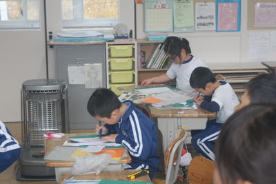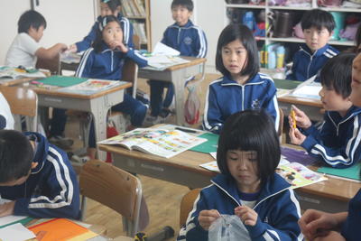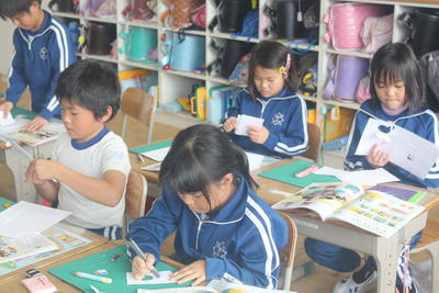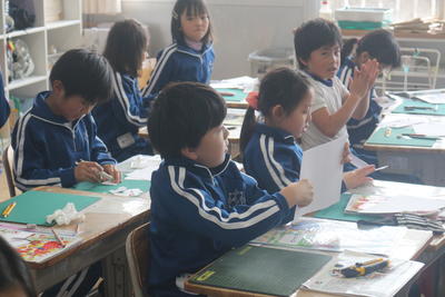 2年生の図工の授業では,安全なカッターの使い方を学習しものづくりをしていました。