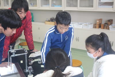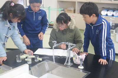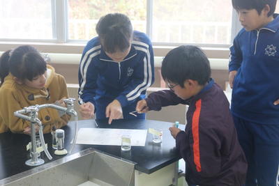 6年生の理科の授業の様子です。今日は、水溶液について学習しています。リトマス紙を用いて6つの水溶液を仲間分けしています。
