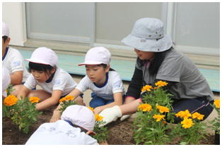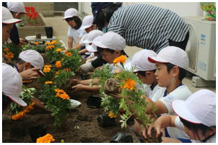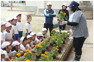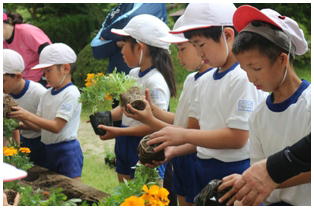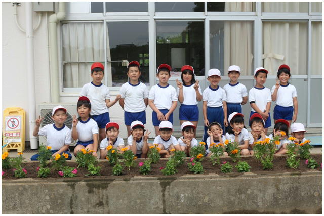 今日は、2年生が花壇に花の苗を植えました。去年教わったことを忘れず思い出して行えました。