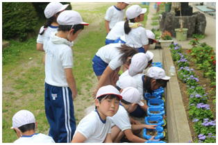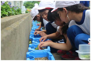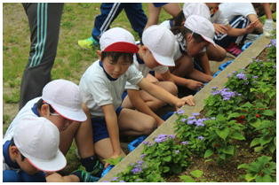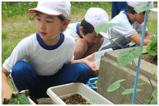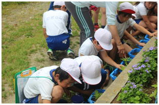 3年生の理科の授業の様子です。先日蒔いたホウセンカなどの芽の出具合など注意深く観察するとともに除草をしたりしていました。