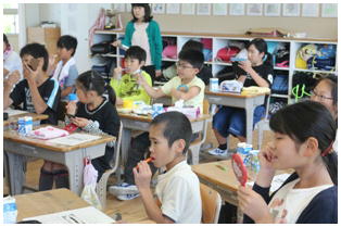 歯科教室(5・6年) 2018年6月14日 11時56分 午前中に5・6年生の歯科教室が行われました。歯科衛生士、保健師の方においでいただき口の中の細菌を見せていただいたり正しいブラッシングについて学習することができました。虫歯のある児童は、早めに治療するようお願いします。