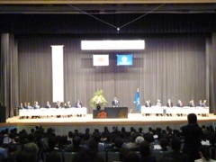 10月15日(土)、第64回福島県PTA研究大会郡山ブロック大会が、郡山女子大学を会場に盛大に開催されました。午前中の分科会に次いで、午後は全体会、和合亮一氏による記念講演が行われました。また、お昼のアトラクションでは、郡山市立開成小学校合唱部の皆さんが、すばらしい歌声を披露してくださいました。