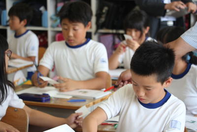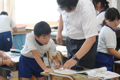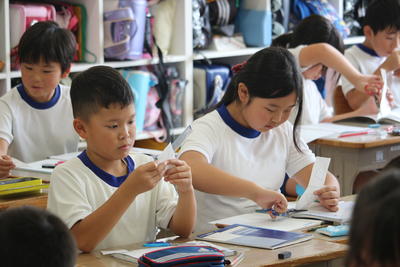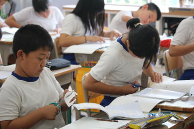 5・6年生の授業(3・4校時) 2019年7月16日 14時28分 5年生の3校時の授業は算数で「合同な図形」4校時は家庭科の授業で「整理・整頓」でした。6年生は3校時が,算数で「角柱と円柱の体積」4校時が国語でPC室で,野木沢について調べたことをパンフレットにまとめる学習でした。